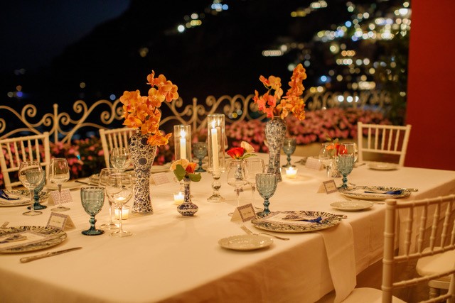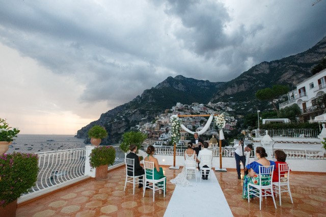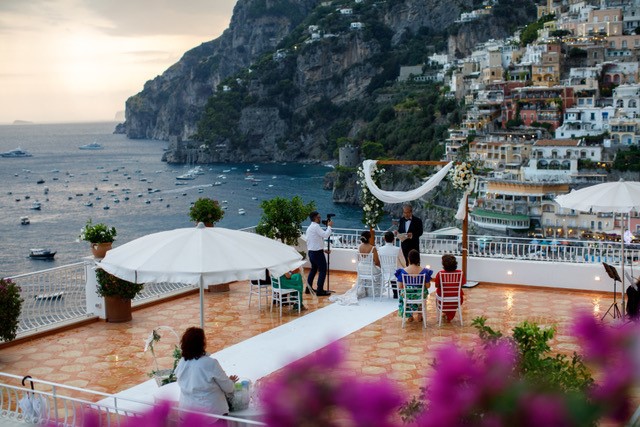 After the ceremony, they celebrated with a very private reception on their room terrace looking over the sea in an 18 century villa.