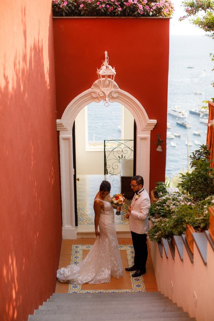 As the sun was shining over the charming village of Positano, in warm August, Lina and Camilo started to feel the love and excitement. The Amalfi Coast, with its dramatic cliffs and turquoise waters, was the perfect backdrop for their intimate elopement.